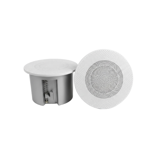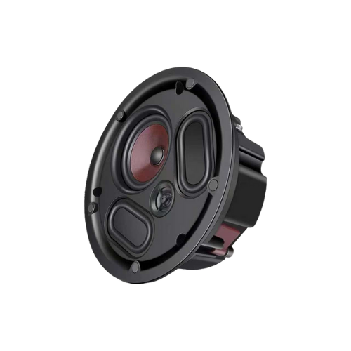 A high-performance ceiling speaker engineered for immersive audio, delivering deep bass, clarity, and impact in a compact architectural form.